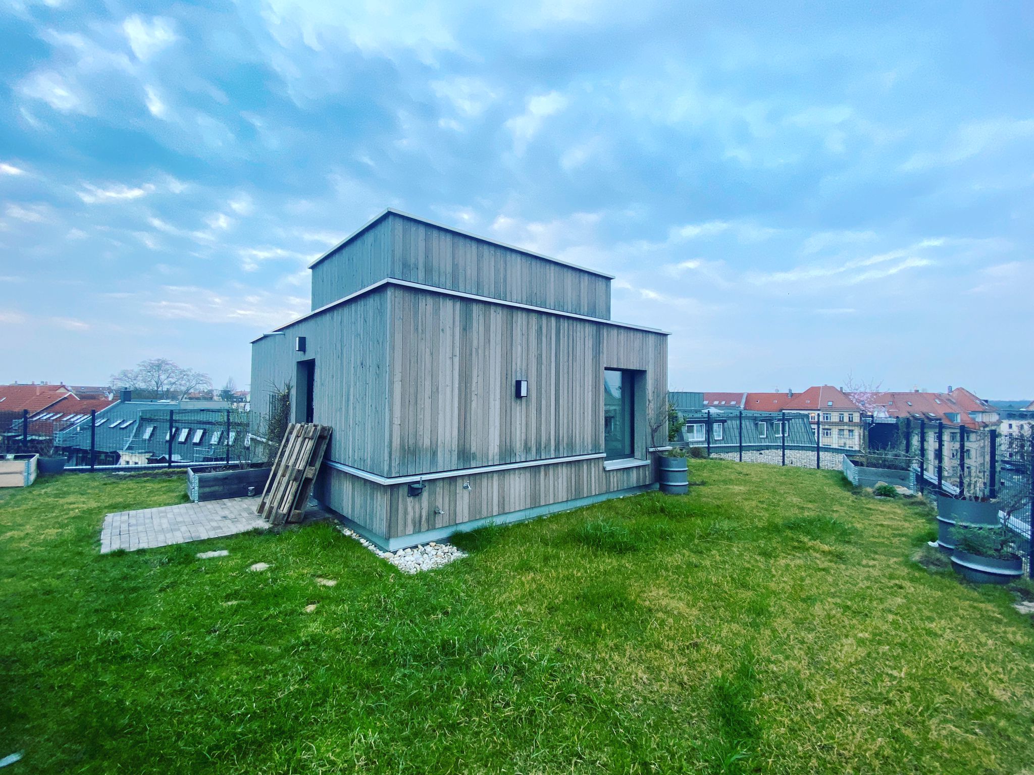 Wir haben einen Imbiss vorbereitet, so daß wir diesmal die Location für das Essen nicht wechseln müssen. Und wer möchte, kann von der Dachterrasse aus auch einen Blick über Leipzig werfen.