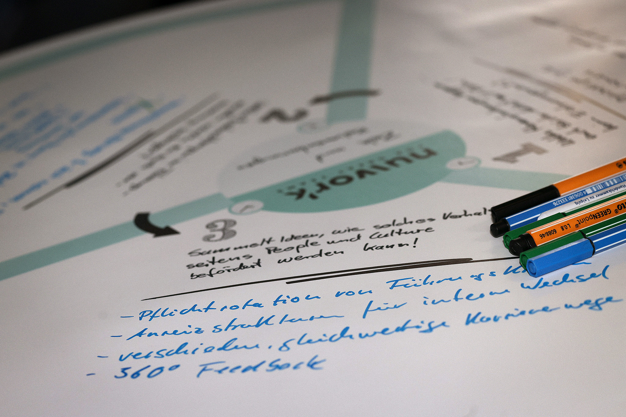 In dem Workshop wurde darüber gesprochen, wie individuelle Leistungsfähigkeit durch eine motivierende Arbeitsumgebung in Freiheit und Verbindlichkeit bestmöglich gefördert werden kann.