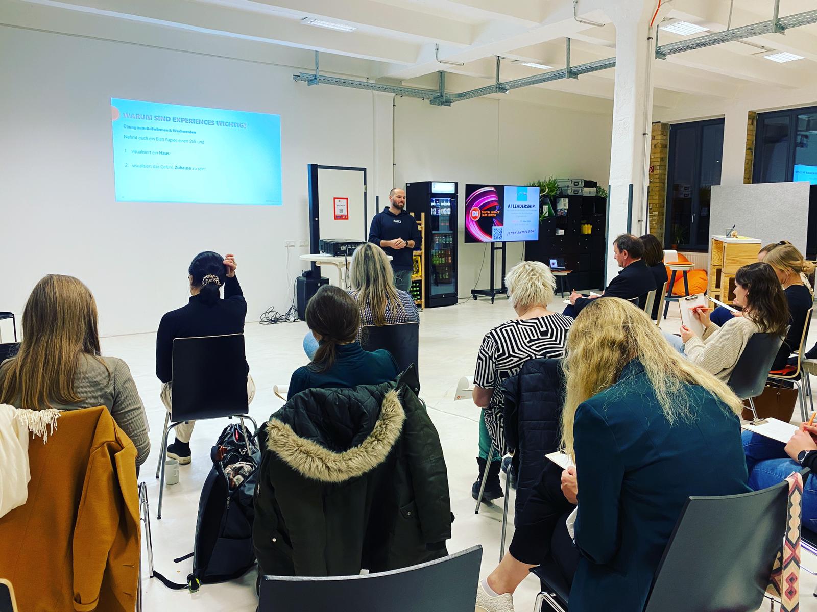 Die Leitung des Workshops sowie den Impulsvortrag zum Thema Experience Design übernahm Dr. Michael Wächter, Managing Director der Digital Impact Labs Leipzig GmbH, stellvertretend für Dr. Justine Walter, gleichfalls Managing Director.