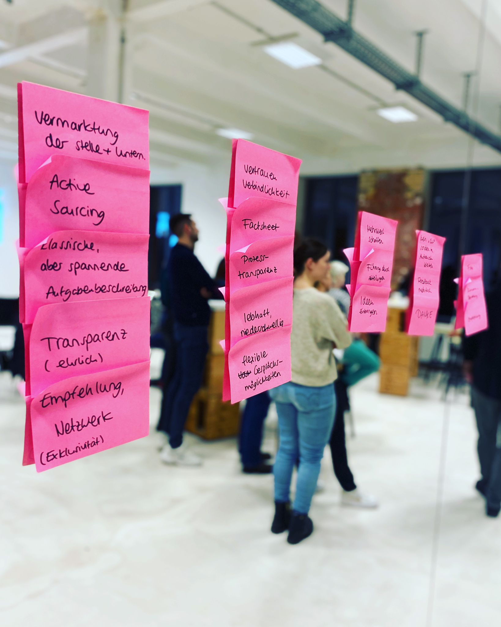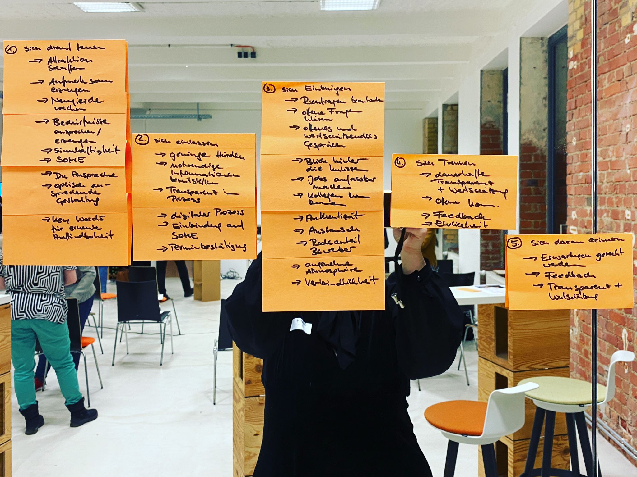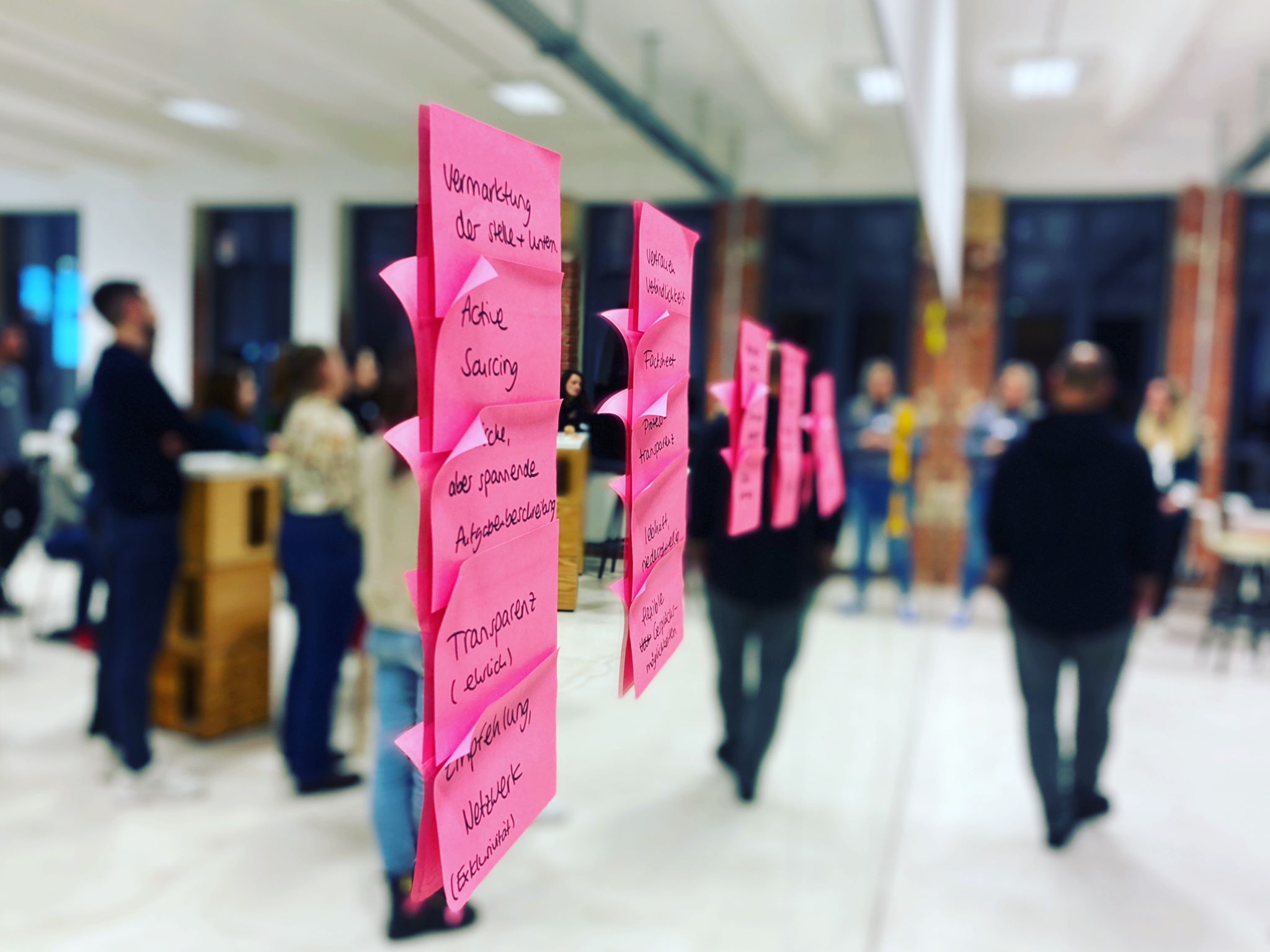 Beim Experience Design geht es darum, Erlebnisse zu entwickeln, die nicht nur digitale Produkte und Services, sondern auch die Strukturen und Prozesse in Unternehmen umfassen – und so eine konsistente Customer Experience über alle Touchpoints hinweg schaffen. Wie sich dieser Ansatz im Recrutingprozess positiv auswirken kann, diskutierten und erarbeiteten die Teilnehmer in Workshop-Kleingruppen.
