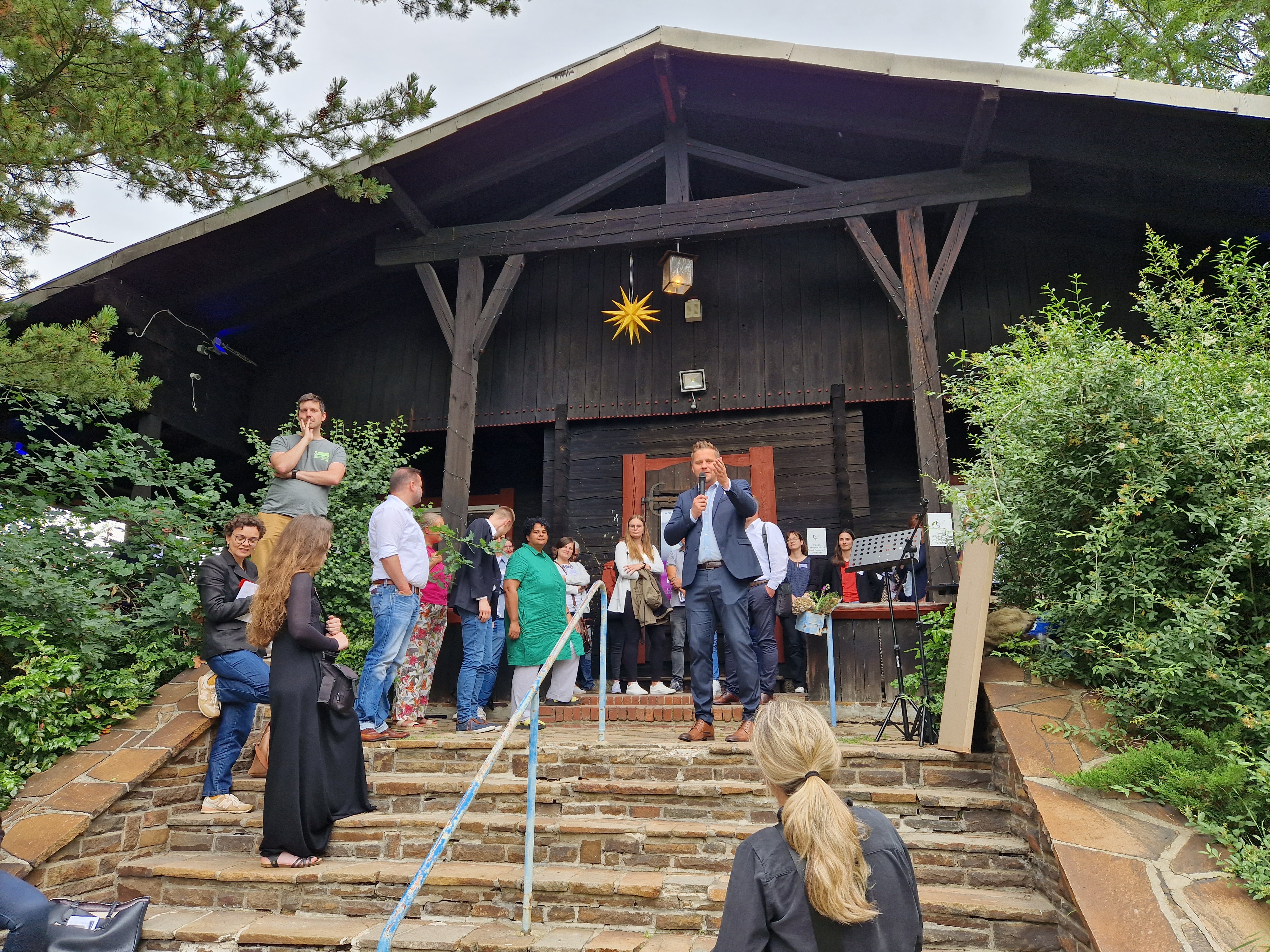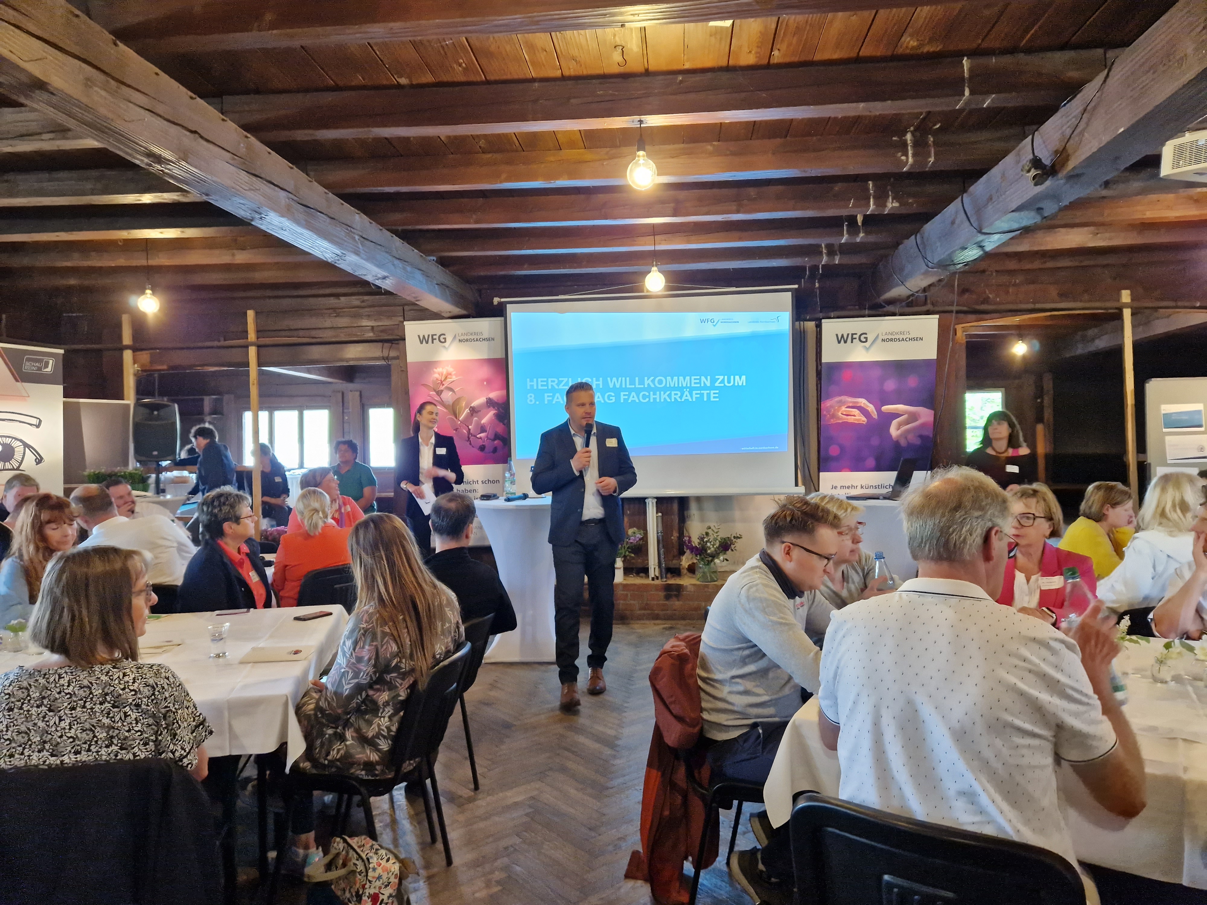 In einer ganz besonderen Location fand am 5. Juni 2024 der 8. Fachtag Fachkräfte in Oschatz statt: Den passenden Rahmen und die Arbeitsatmosphäre für den Austausch bot die Blockhütte der Alten Filzfabrik, bereitgestellt durch Pfennig Bau/Baunativ. Auf Einladung der nordsächsischen Wirtschaftsförderung trafen sich hier knapp 100 Teilnehmer aus Wirtschaft und Schule, um zukunftsweisende Projekte für die Fachkräftegewinnung und –sicherung zu diskutieren.