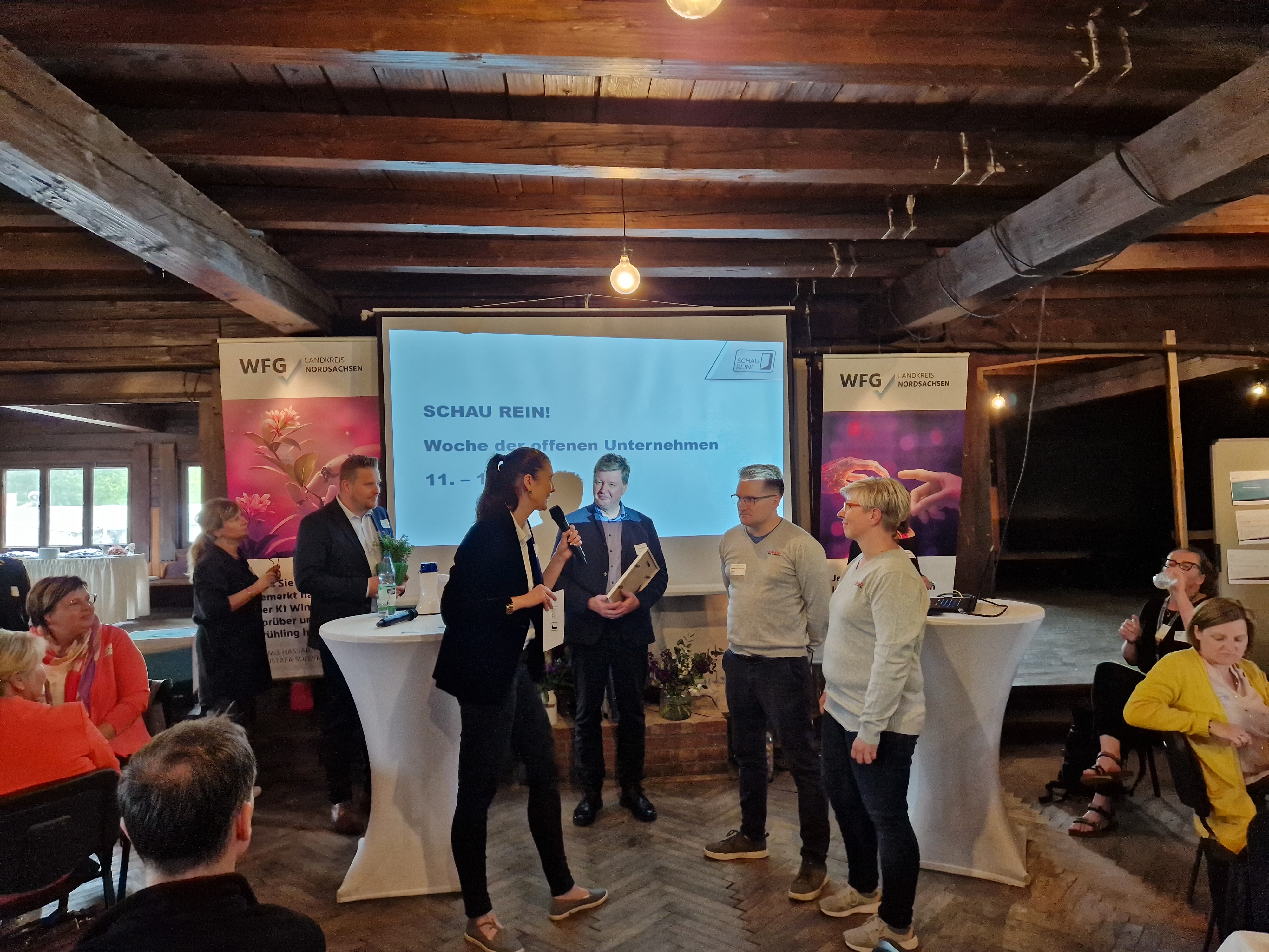 Diesem Thema widmeten sich auch die anschließenden Programmpunkte, Vorträge und Foren: Ein wichtiger Baustein, um Schülerinnen und Schülern ihre Arbeitswelt von Morgen näher zu bringen, ist „Schau Rein! – Woche der offenen Unternehmen“, das größte Berufsorientierungsprojekt im Freistaat Sachsen. Alljährlich werden Preise verliehen an die aktivsten Unternehmen und die besten Schulen. Die diesjährige Übergabe an die prämierten Unternehmen und Schulen aus dem Landkreis Nordsachsen erfolgte direkt hier während des Fachtags.