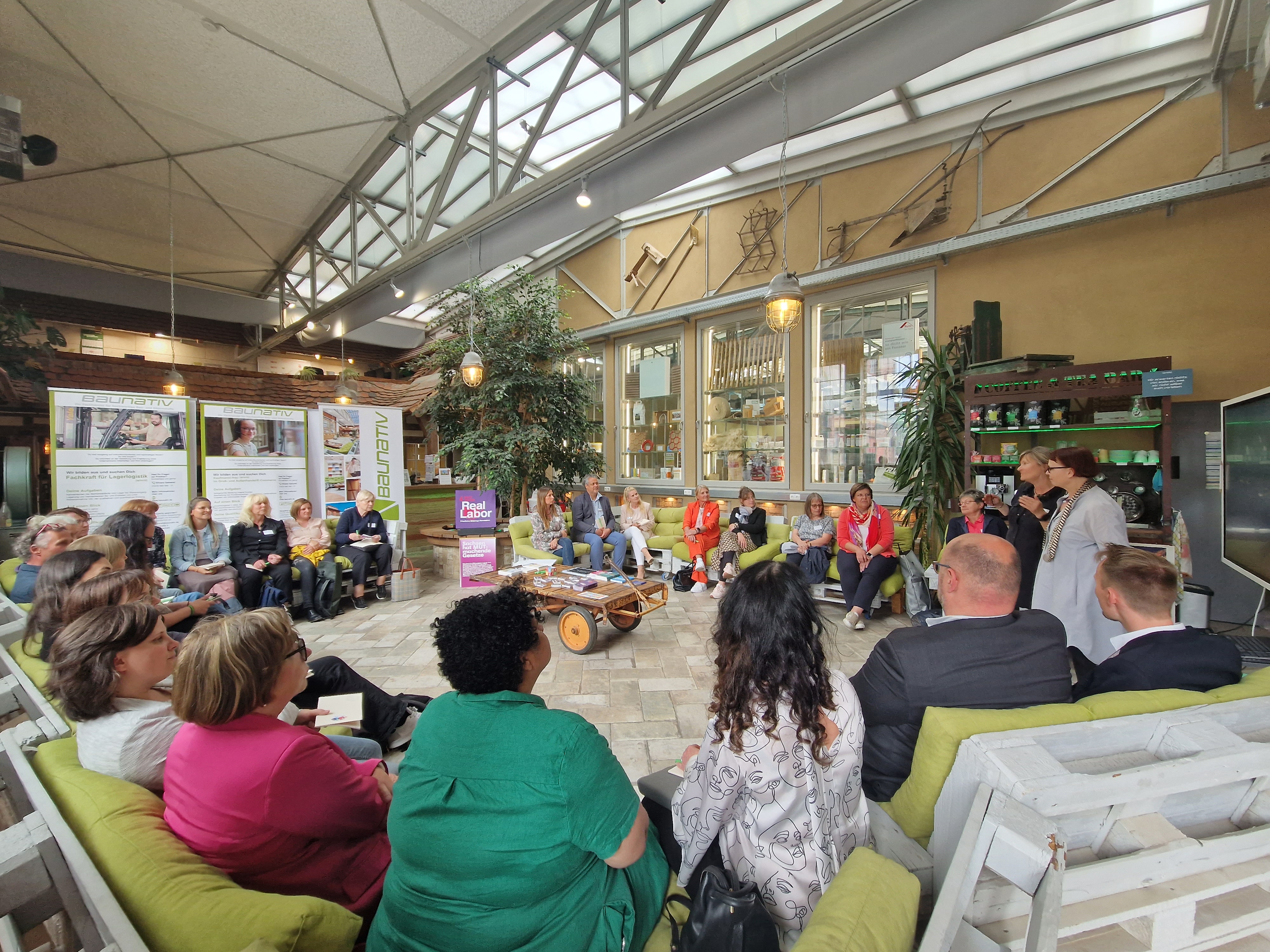 Danach teilte sich die Zuhörerschaft in zwei parallele Foren auf. Das erste Forum bot unter der Überschrift „Schule im Aufbruch“ Denkanstöße für eine Schule von morgen, Referentinnen waren Ute Puder vom RealLabor Leipzig und Doreen Model, Schulleiterin vom Evangelischen Schulzentrum Bad Düben.