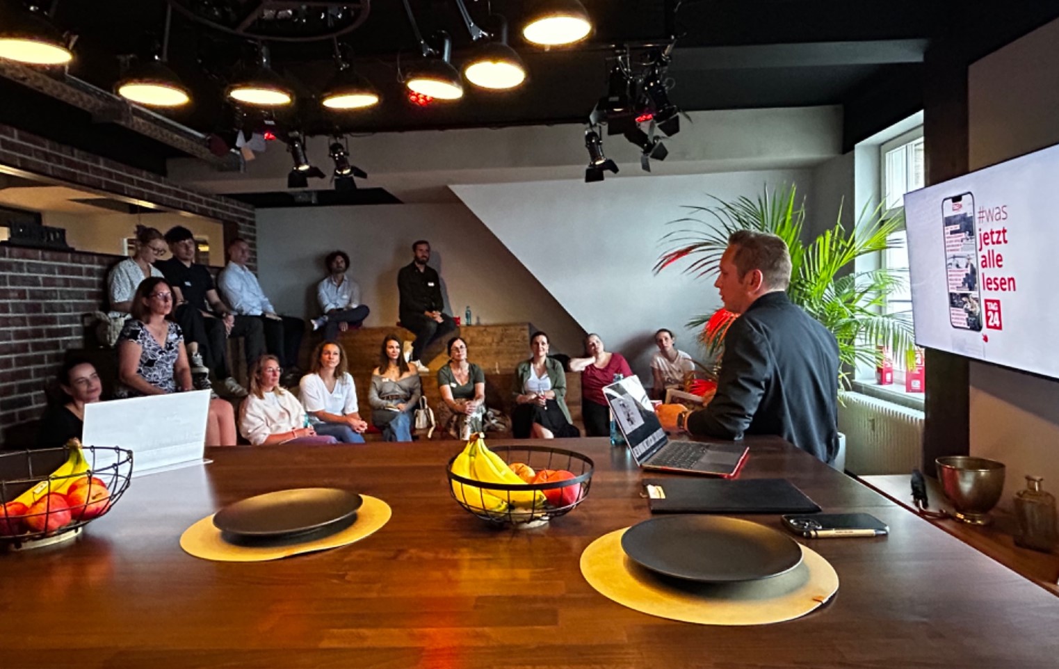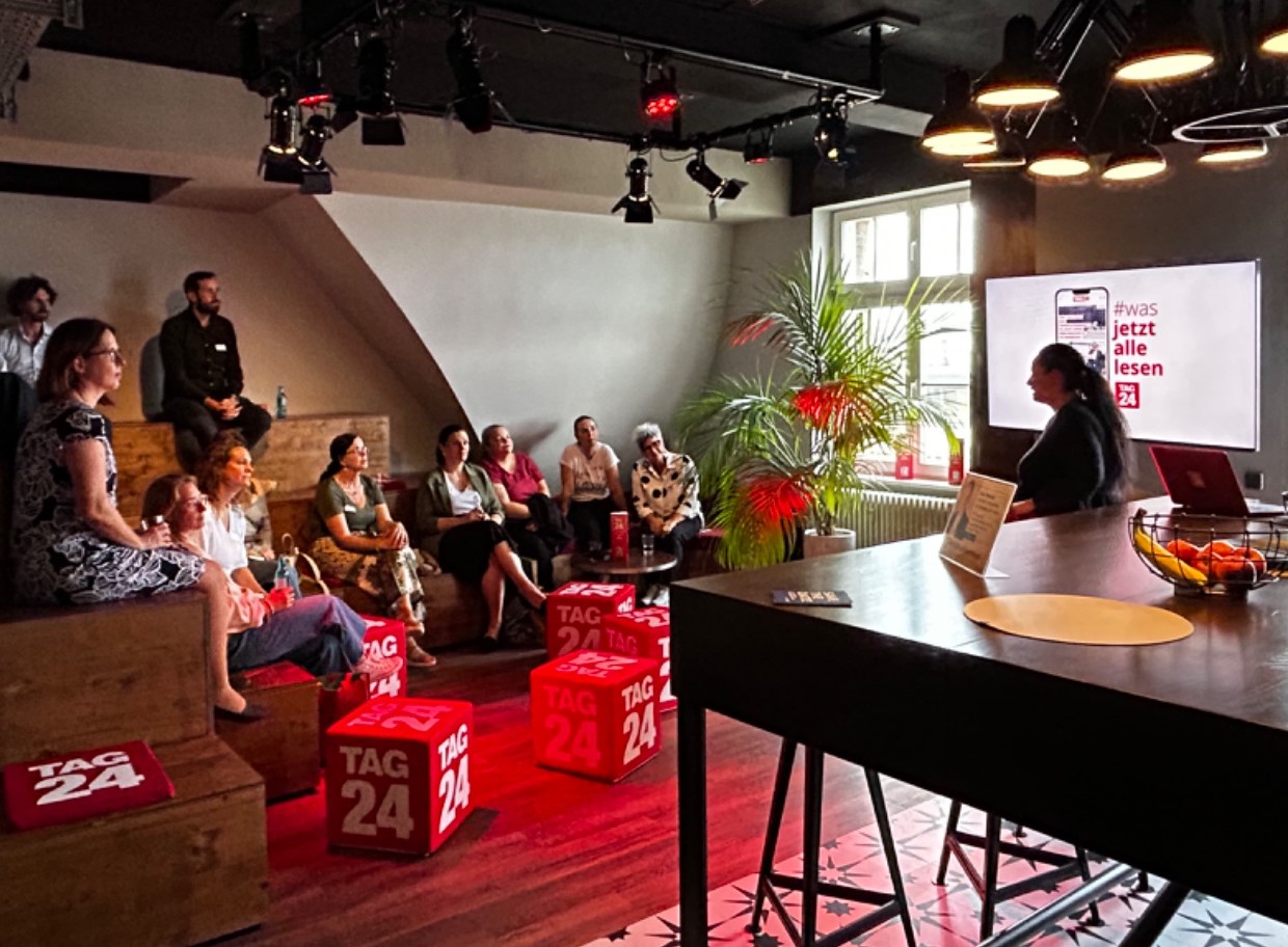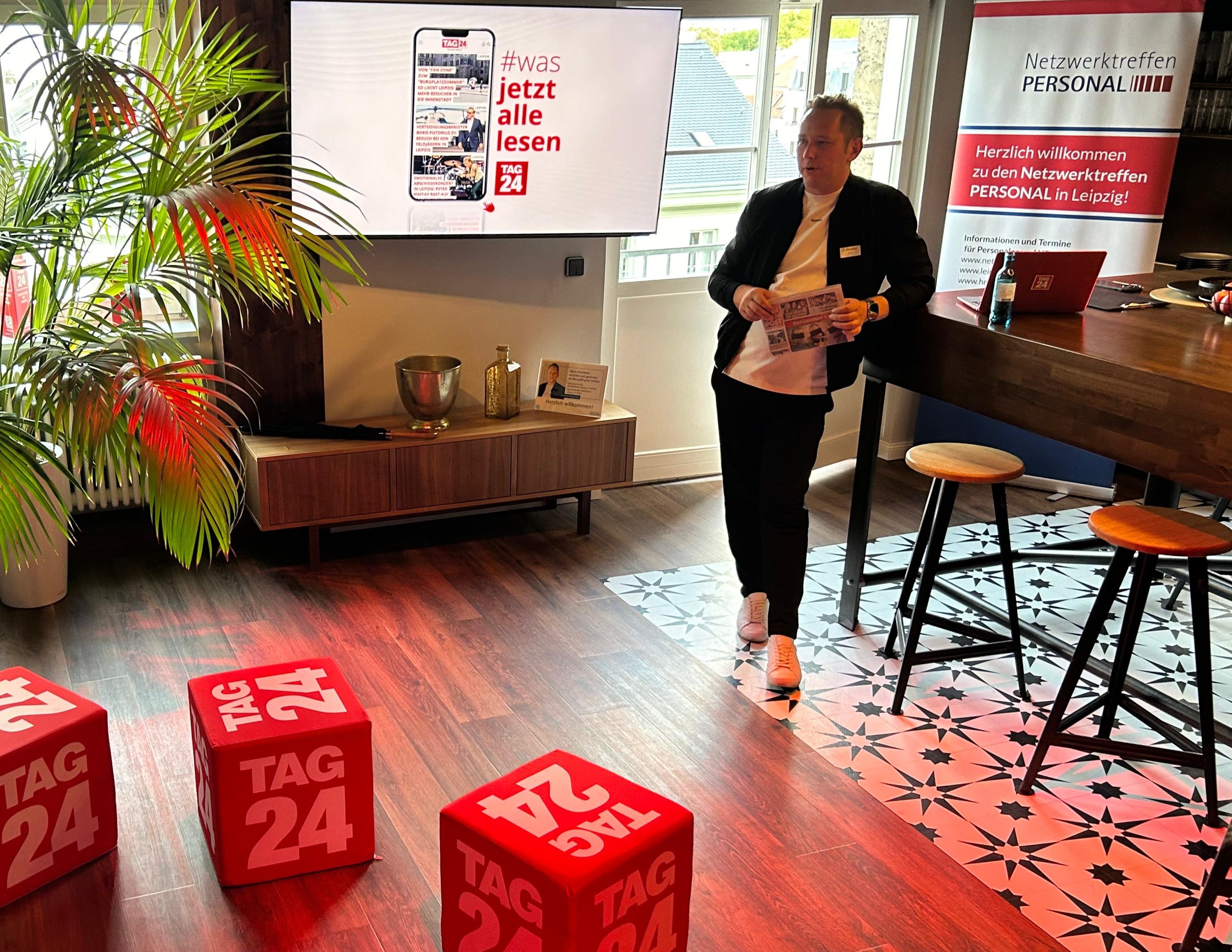 Was war das für ein schöner Abend! Am 9. September trafen wir uns bei der jungen Medienmarke TAG24, um zu erfahren, wie über das online-Newsportal mittels Storytelling und großer Reichweite potenzielle neue Mitarbeiter und Mitarbeiterinnen angesprochen und gewonnen werden können. Dafür waren wir eingeladen in die neuen Redaktionsräume in der Karl-Liebknecht-Straße unweit des Leipziger Zentrums.