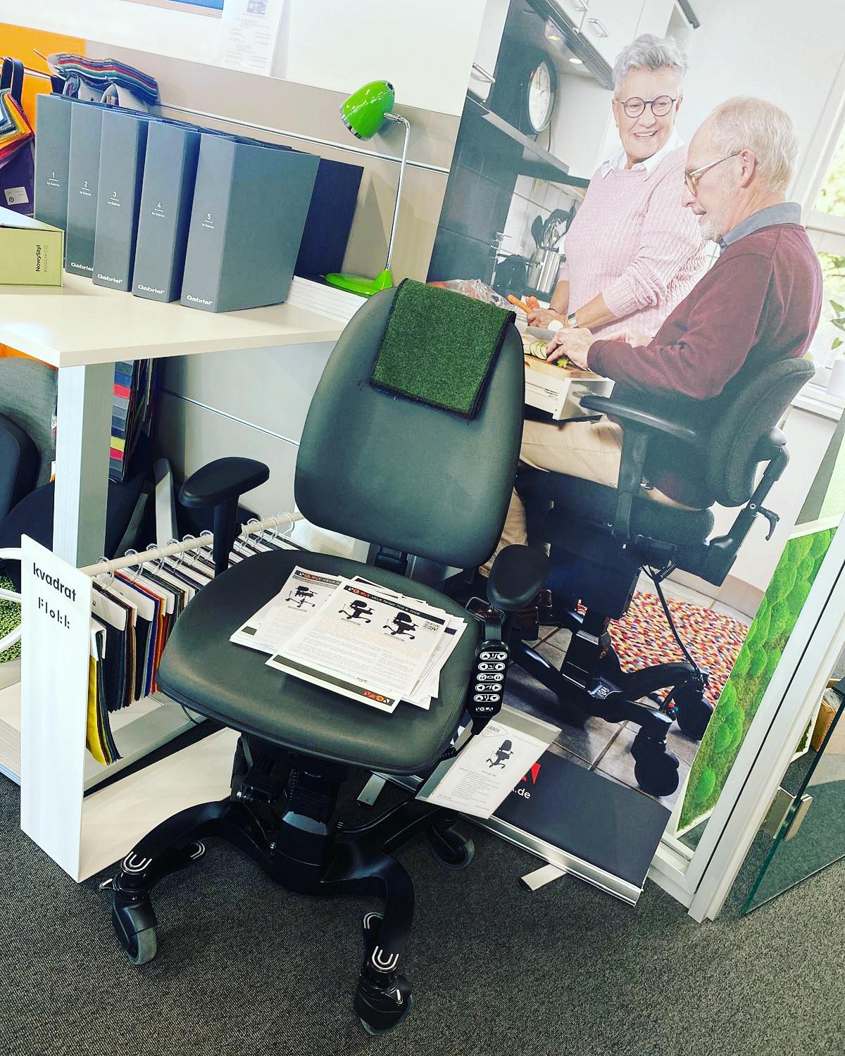 Dagmar: Wir wollten zeigen, wie man dadurch letztendlich auch zu mehr Motivation im Team kommt. Wir erleben es ja tagtäglich: Die Teams werden immer heterogener, gleichzeitig wollen wir Arbeitskraft erhalten, und wir können es uns tatsächlich nicht mehr leisten, Leute mit einer Einschränkung bzw. mit einem Handicap nur im Home-Office zu lassen oder sie einfach zu berenten, wie man es früher gemacht hat. Wir wollen diverse Teams bilden, und dazu gehört natürlich auch, Leute mit einem Handicap oder mit einer kleineren körperlichen oder auch geistigen Einschränkung mitzunehmen; – und das ist mit vielen unterschiedlichen Hilfsmitteln durchaus möglich. Auf dem Personalforum im vergangenen Jahr haben wir das gezeigt und wollen es nun auch am 2. April hier bei uns noch einmal ausführlicher vorstellen. Das Thema findet bisher oft zu wenig Beachtung, wir wollen dafür nicht nur sensibilisieren, sondern hier in unserer Ausstellung sehr konkret werden. In dem Workshop kann man hier bei uns alle Produkte, Möbel und Hilfsmittel anfassen, testen und ausprobieren. Die Idee ist, an diesem Tag kompakt und unkompliziert sowohl Betroffene, aber auch Leute, die sich beruflich damit beschäftigen, wie zum Beispiel vom Inklusionsservice oder andere Berater, zu informieren und zu zeigen, was möglich ist – und was wir in dem Bereich können.