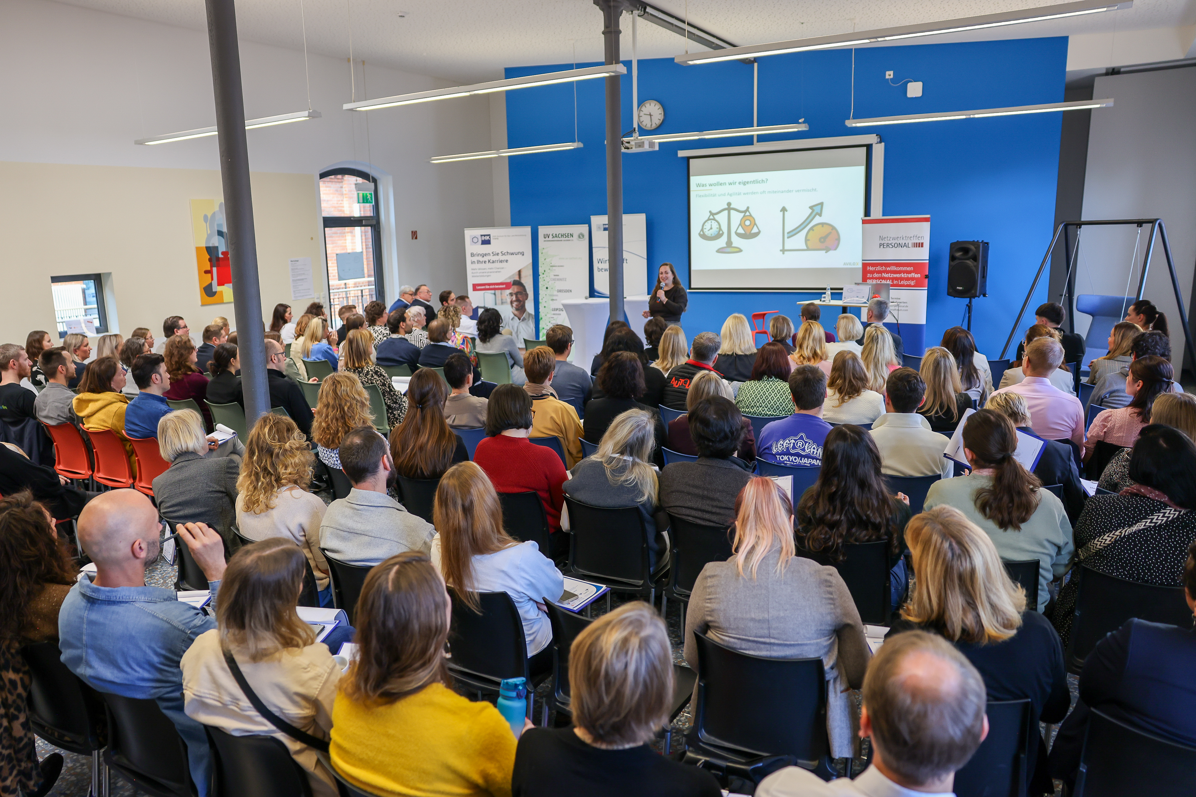 Einmal dehnen bitte! – Wir brauchen mehr Flexibilität! Diese Notwendigkeit stellt wohl kaum jemand in Frage angesichts krisenbehafteter Zeiten. Kurzum: Flexibilität ist der Schlüssel zum Erfolg in der modernen Arbeitswelt und war daher Themenschwerpunkt auf dem 16. Leipziger Personalforum am 6. November 2025. Aber haben wir auch die Nebenwirkungen auf dem Schirm? Die Keynote von Lydia Zillmann, Geschäftsführerin der AviloX GmbH, räumte mit manchen Mythen auf und gab ehrliche Einblicke in ein hochgradig flexibles und selbstorganisiert arbeitendes Team. Zudem konnten wir an konkreten Beispiele sehen, wie Flexibilität gestaltet werden kann: mit Haltung, Struktur und klaren Leitlinien.