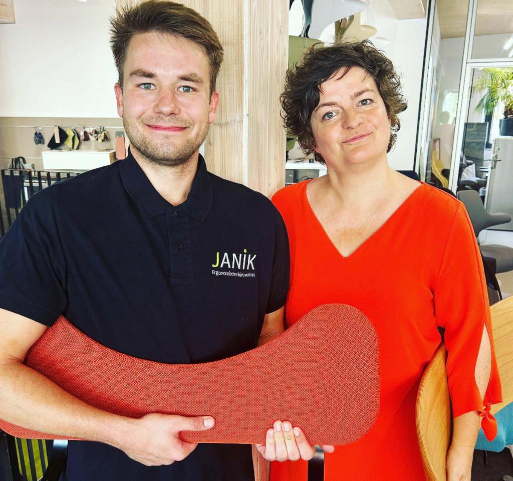 - Dagmar Janik-Stenzel, Inhaberin von JANIK Ergonomische Bürowelten präsentiert wieder gern einige Bewegungshelfer, den Tension-Terminator oder Schaukelpferde für bessere Rückengesundheit am Arbeitsplatz.