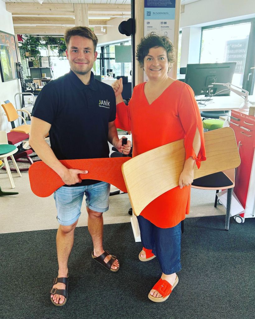- Lennard Behr, 25 Jahre alt, neu im Team JANIK Ergonomische Bürowelten, studierter Sportwissenschaftler und schon häufiger im Einsatz für Rehasport und Trainings zu Ergonomie am Arbeitsplatz, zeigt allen interessierten Vielsitzern einige effektive Übungen für mehr Beweglichkeit.