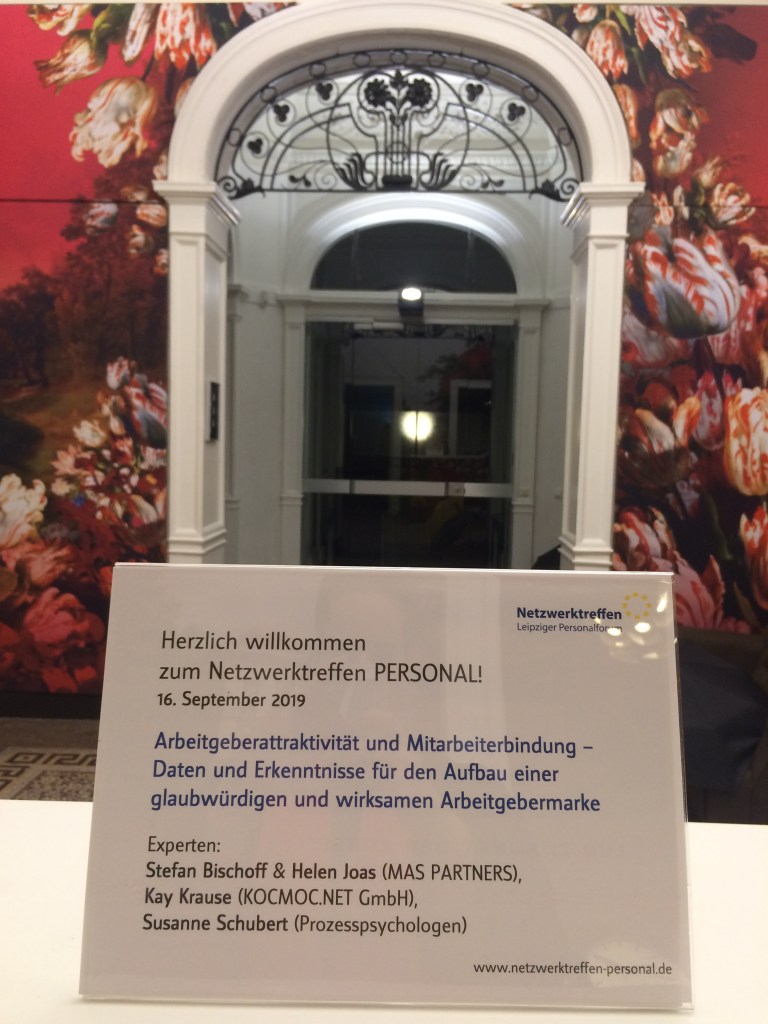 Volles Haus bei der Septemberveranstaltung der Netzwerktreffen Personal in Leipzig. Am 16. September trafen sich fast 40 HR-Experten und Personaler und sprachen über Arbeitgeberattraktivität und Mitarbeiterbindung. Eingeladen hatten MAS-Partners in die KOCMOC.net-Villa am Marienplatz, um in der kreativen Atmosphäre der wirklich besonderen Büro- und Besprechungsräume die „MAS Mitarbeiterstudie Mitteldeutschland“ vorzustellen. Den ausführlichen Rückblick und die Studie gibt es hier: Link Rückblick