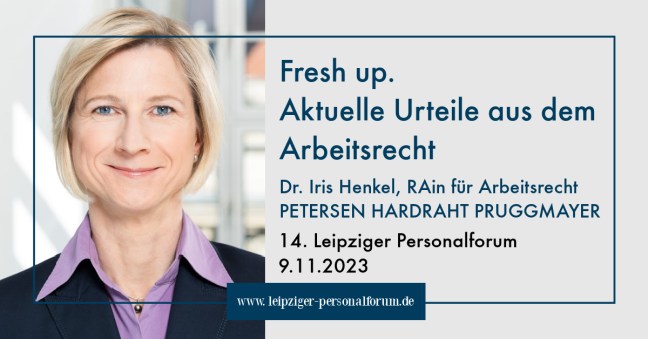 Die Workshop-Runden zum Thema „Arbeitsrecht“ auf dem Leipziger Personalforum sind seit vielen Jahren immer wieder sehr gut nachgefragt. Daher freuen wir uns ganz besonders, daß auch 2023 Dr. Iris Henkel, Fachanwältin für Arbeitsrecht bei Petersen Hardraht Pruggmayer, einen Workshop am 9. November anbot und die Fragen der Teilnehmer beantwortet hat.